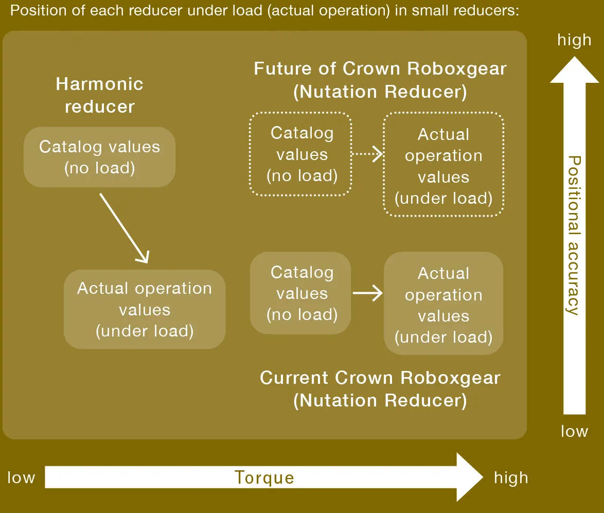 To achieve a large reduction ratio in small precision reducers that require precise control, it is common to use a differential gear reducer mechanism with a large reduction ratio per tooth. Among these, the Crown Reduction Mechanism, classified as a nutation reducer, is structurally suitable for miniaturization, offering high torque while maintaining positional accuracy during actual operation. The Crown Roboxgear has been further refined to create an ultra-compact yet powerful reducer ideal for various use cases, such as small robots.
